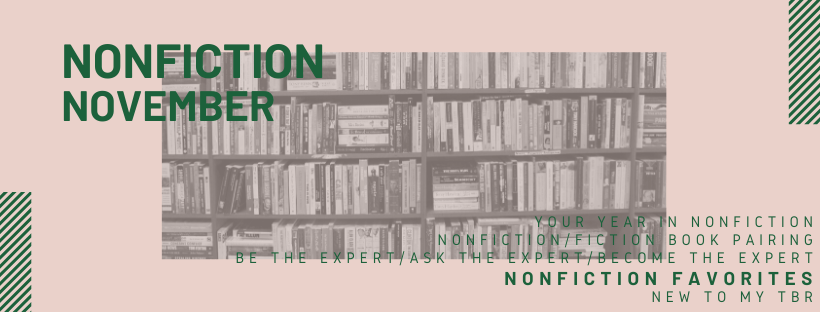 Hello, hello! Finally a Nonfiction November prompt that I feel I can approach with confidence: nonfiction favorites. This week’s prompt is hosted by Leann at Shelf Aware. You can see her host post here! All book title links will take you to their information on Goodreads. While you’re there, go ahead and follow me! (Insert winking emoji here)
