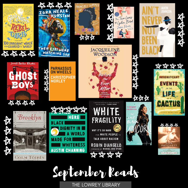 - Ghost Boys: This was one of my many audiobook listens from September. I was looking for books that featured Black male teens as the protagonist (because books with this description are frighteningly absent from my “Read” category), and I found this available as an audiobook from my local library. I highly recommend this one, especially if you are looking for a book that will make you think deeply about police brutality and equal rights. The boy has a charmingly young narrative voice, and he felt like he could have been any one of my students; that created a very deep sense of empathy, for me.